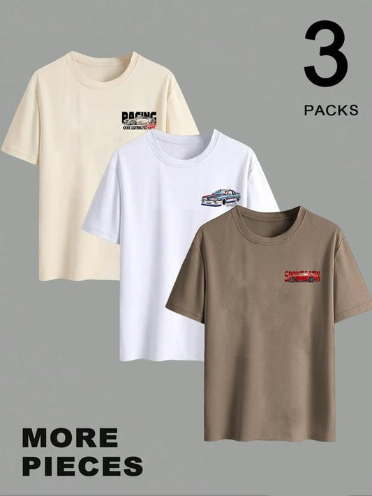 Men'S Car Print round Neck Tee, Regular Fit Casual Short Sleeve Crew Neck T-Shirt for Summer, Men'S Top for Daily Wear