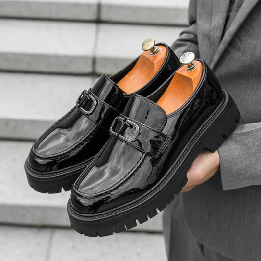 Men'S Sleek British-Inspired Loafers - Thick Sole, Slip-On Dress Shoes for Business & Weddings, Durable Rubber Sole, Autumn, Faux, Groom Men Shoes