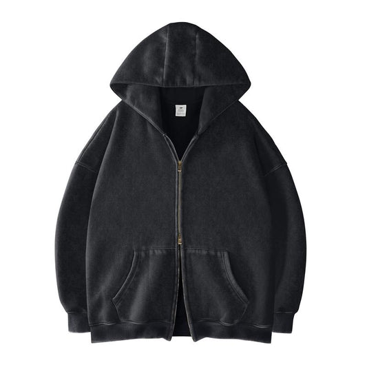 FAIABLE Unisex Oversized Acid Wash Sweatshirt with Double Zipper – Soft Fabric Washed Long Sleeve Pullover for Ultimate Comfort and Vintage Style – Minimalist Tops Perfect Basic Hoodie for Every Casual Occasion Springtok